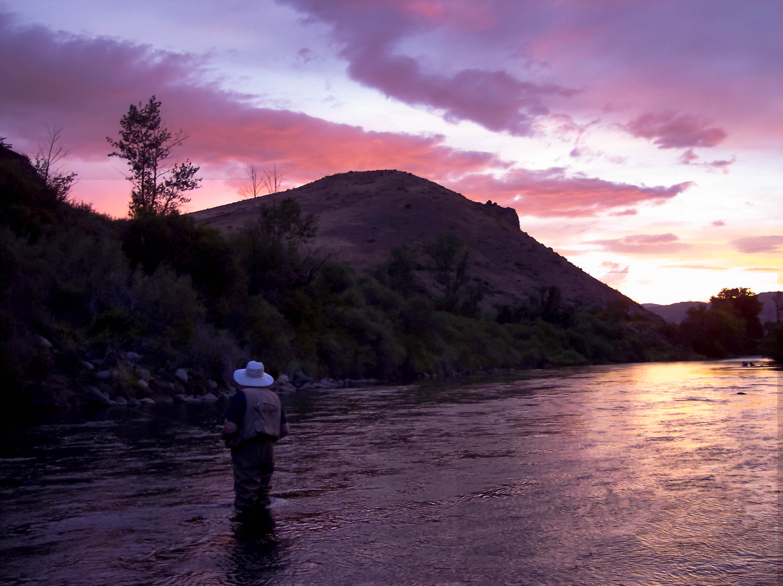 Of course, now I am too old to be much of a fisherman, and now of course I usually fish the big waters alone, although some friends think I shouldn’t. Like many fly fishermen in western Montana where the summer days are almost Arctic in length, I often do not start fishing until the cool of the evening. Then in the Arctic half-light of the canyon, all existence fades to a being with my soul and memories and the sounds of the Big Blackfoot River and a four-count rhythm and the hope that a fish will rise.Eventually, all things merge into one, and a river runs through it. The river was cut by the world’s great flood and runs over rocks from the basement of time. On some of the rocks are timeless raindrops. Under the rocks are the words, and some of the words are theirs.I am haunted by waters. (104)