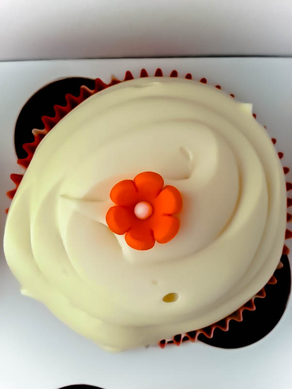 The doggie cupcake is completely edible, and it tasted good when I tried one. Okay, maybe I tried two . . . . The cupcake was vanilla cake with a vanilla cream cheese frosting. The eyes are candies I found at the store. The tongue is pink vanilla-flavored fondant, and the nose is black licorice that I cut to make a nose shape. My vet had been so good to my doggie (who is a . . . difficult patient), that I felt like she needed to be thanked with something tangible. She and the staff loved the cupcakes, particularly since they look like my dog. With all my cupcakes, I make sure to use all edible decorations. Heck, what’s the point of a cupcake if you can’t eat every part of it?